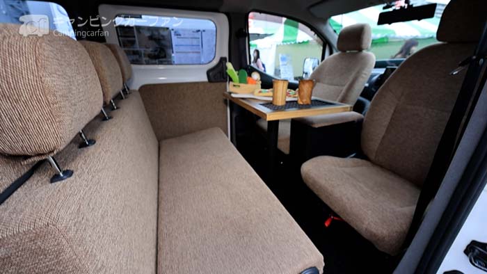 ふたり旅の場合は運転席と助手席に座るので、後席のレイアウトは自由だ。気に入ったレイアウトを選ぶと良いだろう。ただし、特にバンコンでは、前向きに着座できるようになっているシートは車幅いっぱいに設置されている場合がある。このようなレイアウトは、前後の移動が難しいので、特に必要なければロングシートの方が良いだろう。