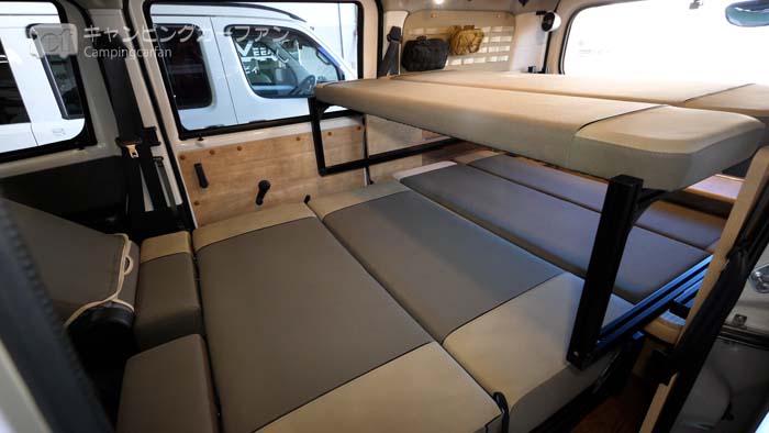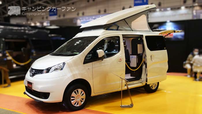 ベース車はハイエースやNV350キャラバンの標準ボディ、あるいはNV200バネットが上げられる。これにポップアップルーフがあると、普段ではノーマルに見えるが車内で寛ぐときは高い天井高で理想的だ。またポップアップルーフを上げると、そのスペースで就寝できるので、就寝人数を稼ぐには良い手段だ。