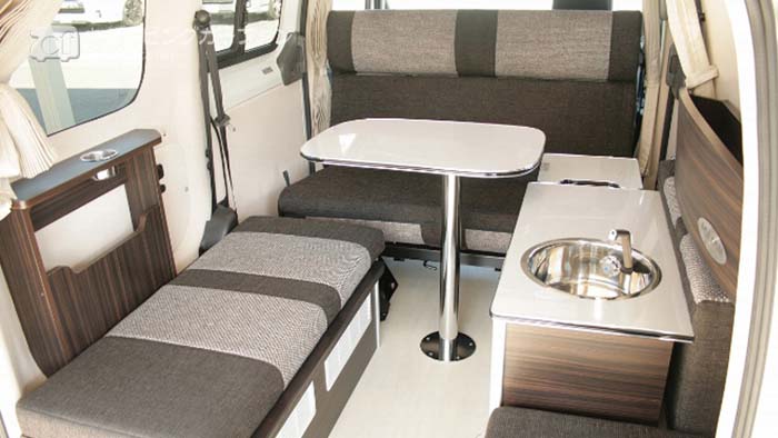 NV200でも長期旅ができない訳ではないが、やはりハイエース標準ボディクラスの方が楽。取り回しも慣れればそれほど苦労することはない。また何泊も就寝するので、ベッドは常設ベッドがお勧め。また二人で使用するので、ダイネットは前向き着座にこだわる必要はなく、ソファダイネットでも良い。