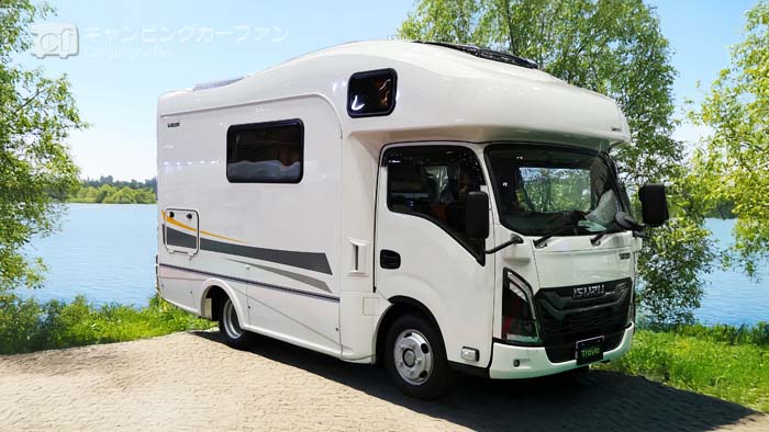 トヨタカムロードをベース車にする、全長5mを切るキャブコンで温水シャワーも設置可能。 家庭用エアコンやFFヒーターが標準装備され、同社独自の大容量リチウムイオンバッテリーシステム「ILiS」もオプションで設置できる。