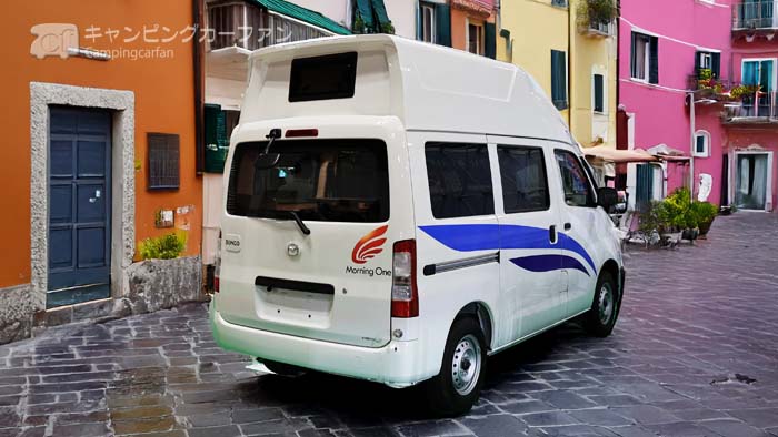 モーニングワンキャンパールポは、新相武が製作する、トヨタタウンエースバン、あるいはマツダボンゴバンをベース車にし、FRP製のハイルーフを架装したバンコンキャンピングカー。