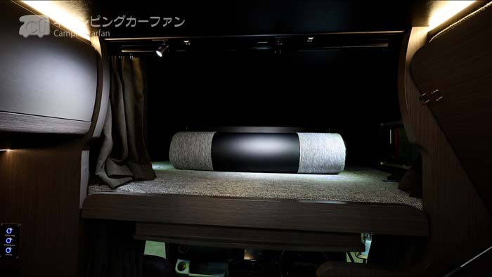 さらに、ベンチシートの上部には跳ね上げ式のシングルベッドが設置されている。ベッドサイズは、2000x710mm。ゲストがあった時の追加ベッドとしても有用だ。