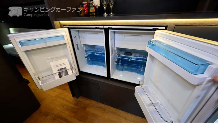 50L横開き式冷蔵庫が2台標準装備される