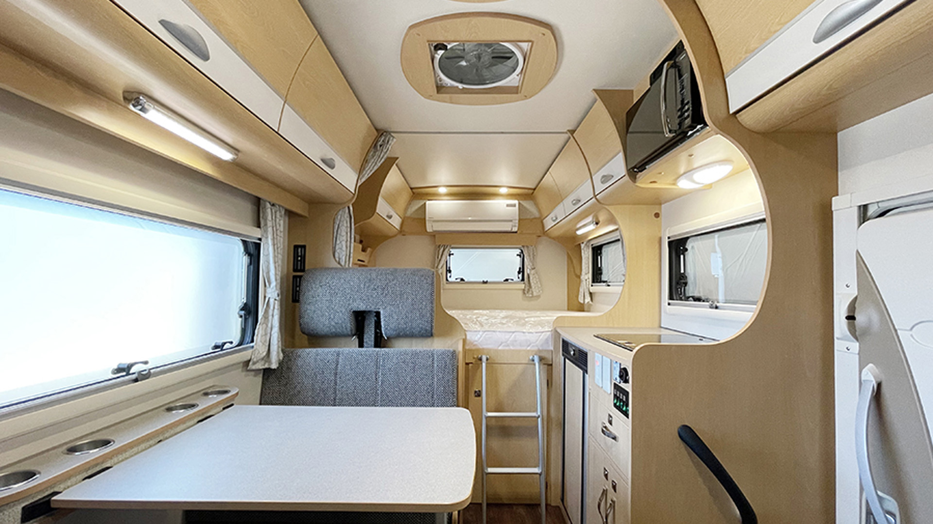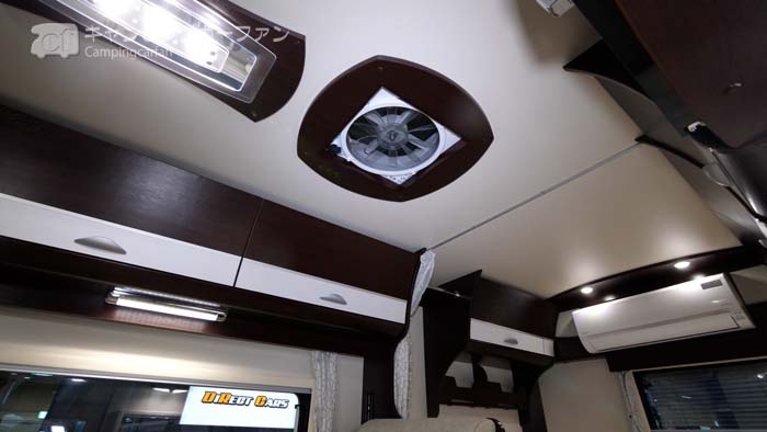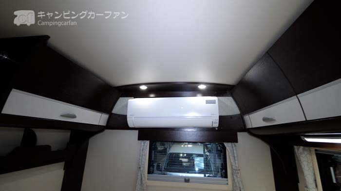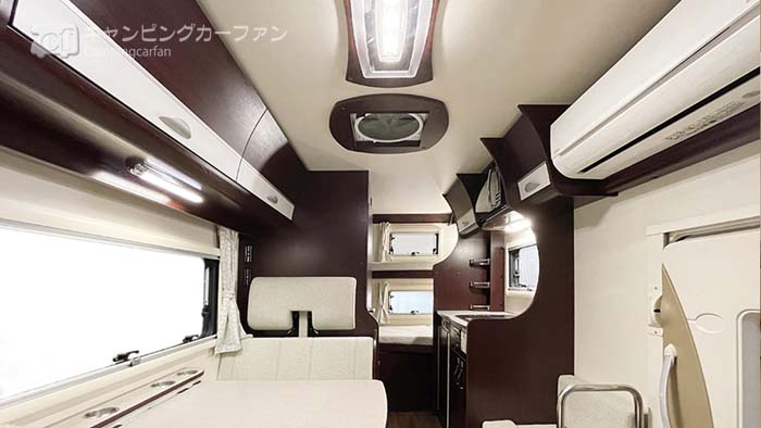 家庭用エアコンを標準装備するが、サブバッテリーは100Ahのディープサイクルバッテリーを2個標準装備。リチウムイオンバッテリーはオプションで装備できる。