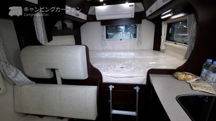 就寝定員は、後部ベッドに2名、バンクベッドに3名、ダイネットベッドに1名で計6名となっている。