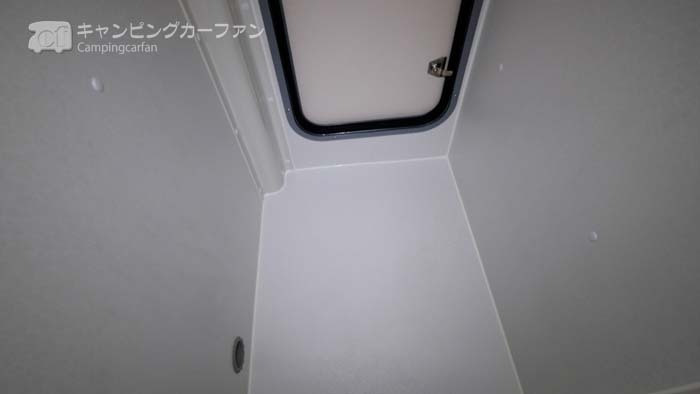 FFヒーターの吹き出し口も設置されているので、トイレやシャワー時に寒い思いをすることはない。カセットトイレを付けない場合は外部へのドアがあるので、スキーウエアなど濡れた荷物を車外から直接積み込むこともできる。