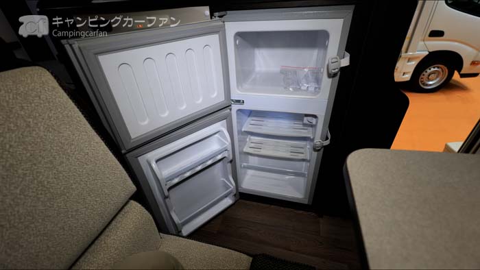 冷蔵庫はグランデ仕様に60Lの2ドアが標準装備される。アバンテ仕様にはオプション。このクラスに2ドア冷蔵庫が採用されるのは珍しい。