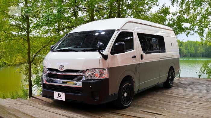 KUMA Qはドリームドライブが製作する、ハイエーススーパーロングをベース車にしたバンコンキャンピングカー。