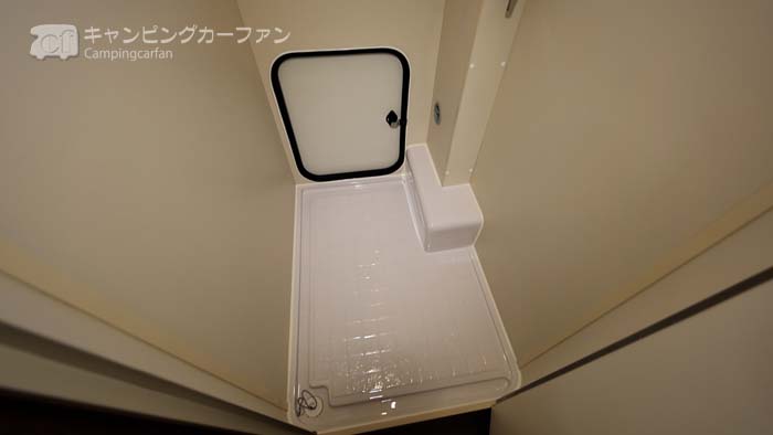 多目的ルームは防水処理がされており、排水口も設置されている。オプションのポータブルトイレやラップ式トイレを設置してトイレルームにすることも可能。カセットトイレもオプション設定されている。