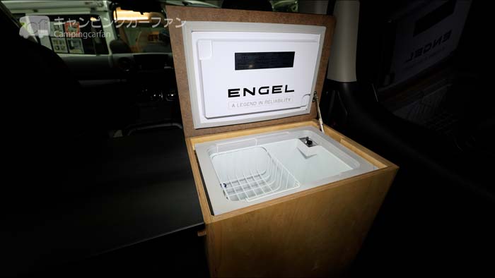 冷蔵庫は40L上開き式が標準装備される。この冷蔵庫は-15℃~5℃の冷凍・冷蔵機能があるが、同時にはできない。即ち、製氷しながら飲み物を冷やすということはできない。