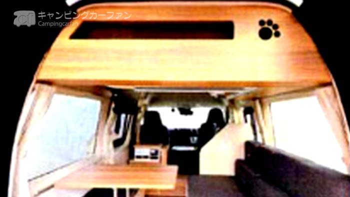 引き出し式ながら冷蔵庫、電子レンジ、家庭用セパレートクーラーを標準装備し、クルマ旅にも対応できる仕様となっている。オプションながら、ベース車のクーラーユニットを移設して運転席、助手席から後部への移動をし易くしているのが特徴。