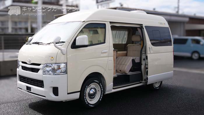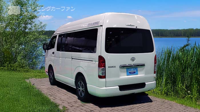 ベース車はトヨタハイエース標準ボディハイルーフ バン DX。上の写真の車体にはGLパッケージが追加されている。