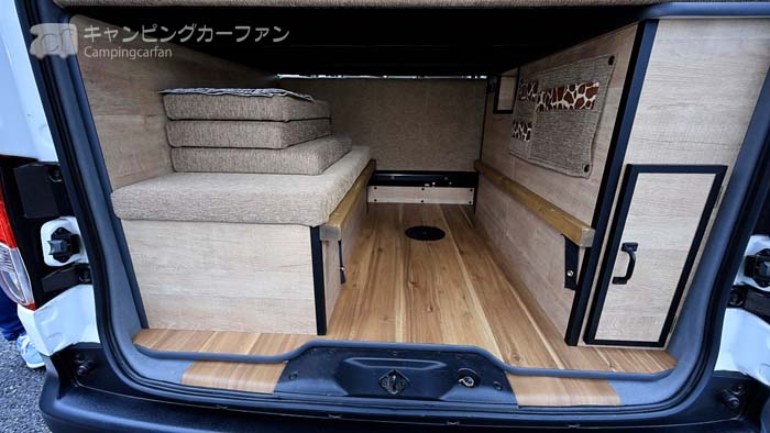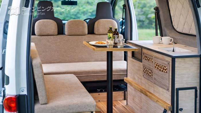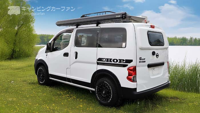 NVホップはタコスが製作する、日産NV200バネットをベース車にするバンコンキャンピングカー。
