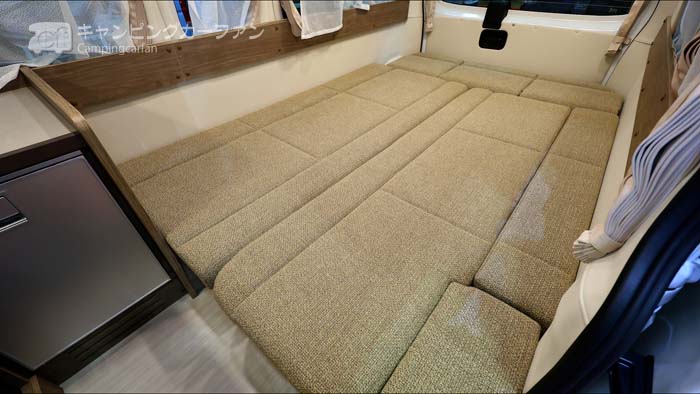 多目的ルームがある場合、ベッドサイズは1830x15600mmの大きさになる。幅方向は同じで身長方向は短くなるが、1800mm以上あるので一般的な身長のユーザーなら窮屈感は無いだろう。