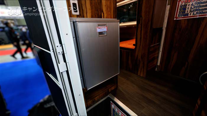 冷蔵庫は49L横開き式が標準装備される。エントランスの横に設置されているので、車外からの飲み物の取り出しや、買い物後の食材の運び入れも極めてスムーズに行える。