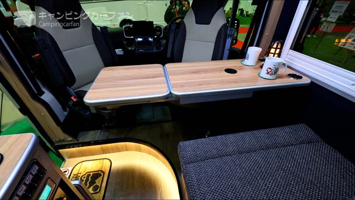 ・運転席、助手席が回転して4名対座のダイネットになる高いスペース効率