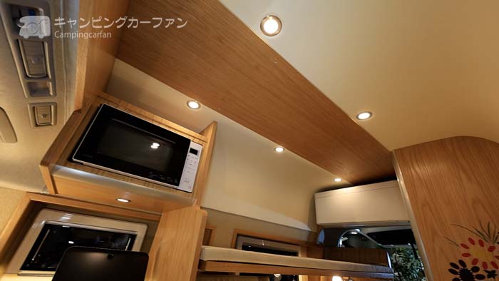家庭用の100V仕様の電子レンジが標準装備される。インバーターはオプションなので、外部電源が無いところで電子レンジを使いたい場合は、オプションの1500W正弦波インバーターを設置する必要がある。