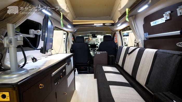 特にバンコンで車幅方向に幅が広い2~3名掛けのマルチモードシートが配置されている場合、運転席から後部に行くのが困難な場合がある。ふたり旅専用の場合は、ロングソファタイプのダイネットをお勧めする。